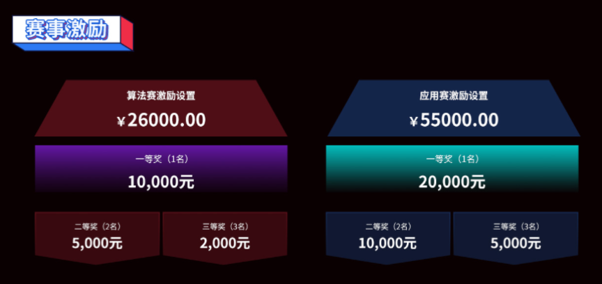 本次赛事分为初赛和决赛两个阶段,初赛阶段将通过线上评选进行,综合得分排名靠前的团队将有机会晋级决赛;决赛阶段各位晋级团队将通过答辩的方式评选出最终名次。本次大赛设立一、二、三等奖,总奖金池达8万余元。